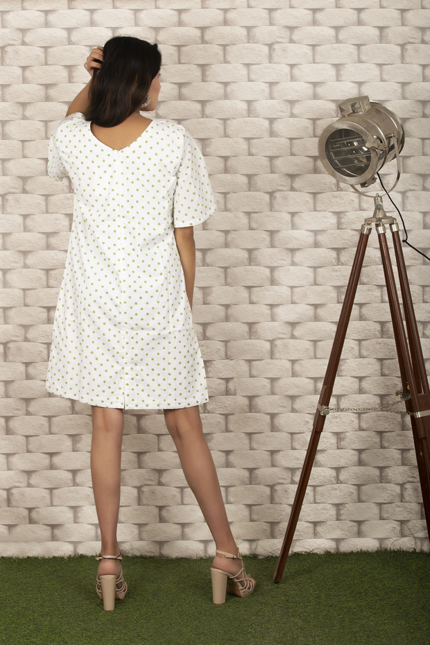 This is a One Piece Dress on Pure cotton Fabric with elbow-length umbrella sleeves. Back zip and back slit with V neck on Front and Back.